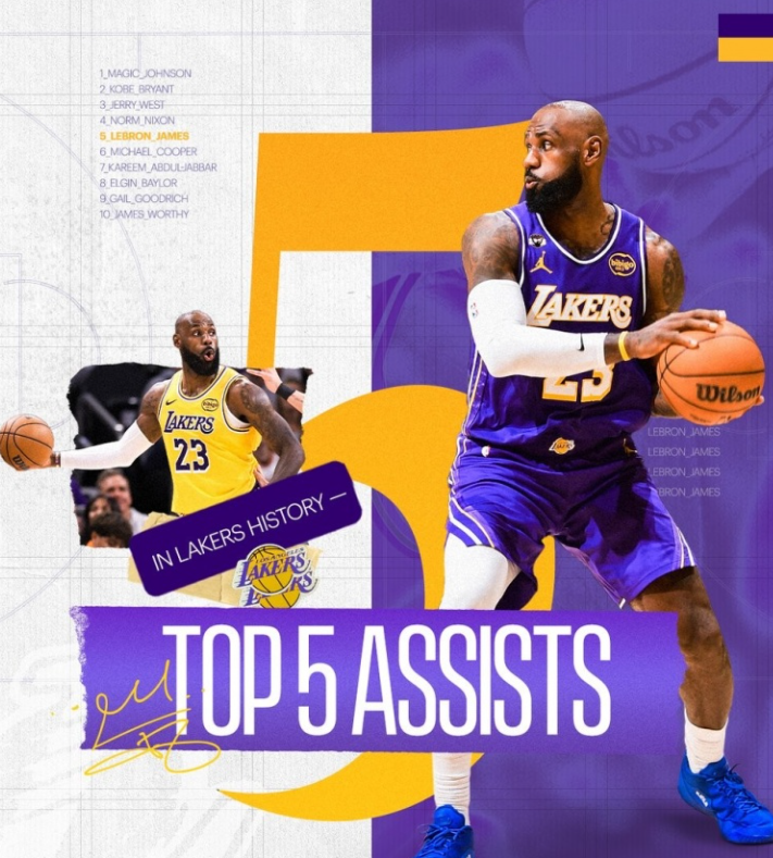 - 1. 詹姆斯湖人生涯已经送出3667次助攻,超库珀跻身队史第五位;